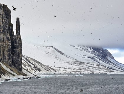 Morning found National Geographic Sea Lion cruising through Idaho Inlet. Humpback whales filled the morning calm with gasping breaths while Dall’s and harbor porpoises sent sprays of water flying in the sun. Cheers and cries of delight erupted on deck as a playful humpback whale calf breached four times in quick succession.