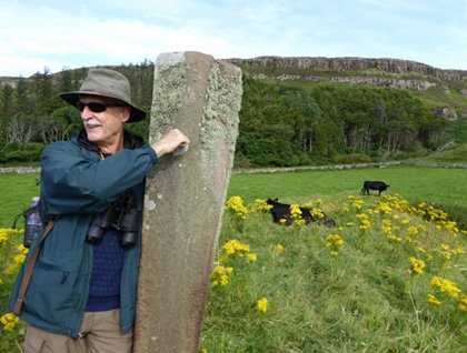 Steve Blamires and Konia Tack lead a walk to an ancient Celtic cross, past the grave of the former owner of the island, John Lorne Campbell. He gifted the island to the National Trust of Scotland, who still runs it. By the Celtic cross is a pillory stone, believed to have been used to punish sinners by squeezing a thumb of theirs into the hole in the stone. Charming!