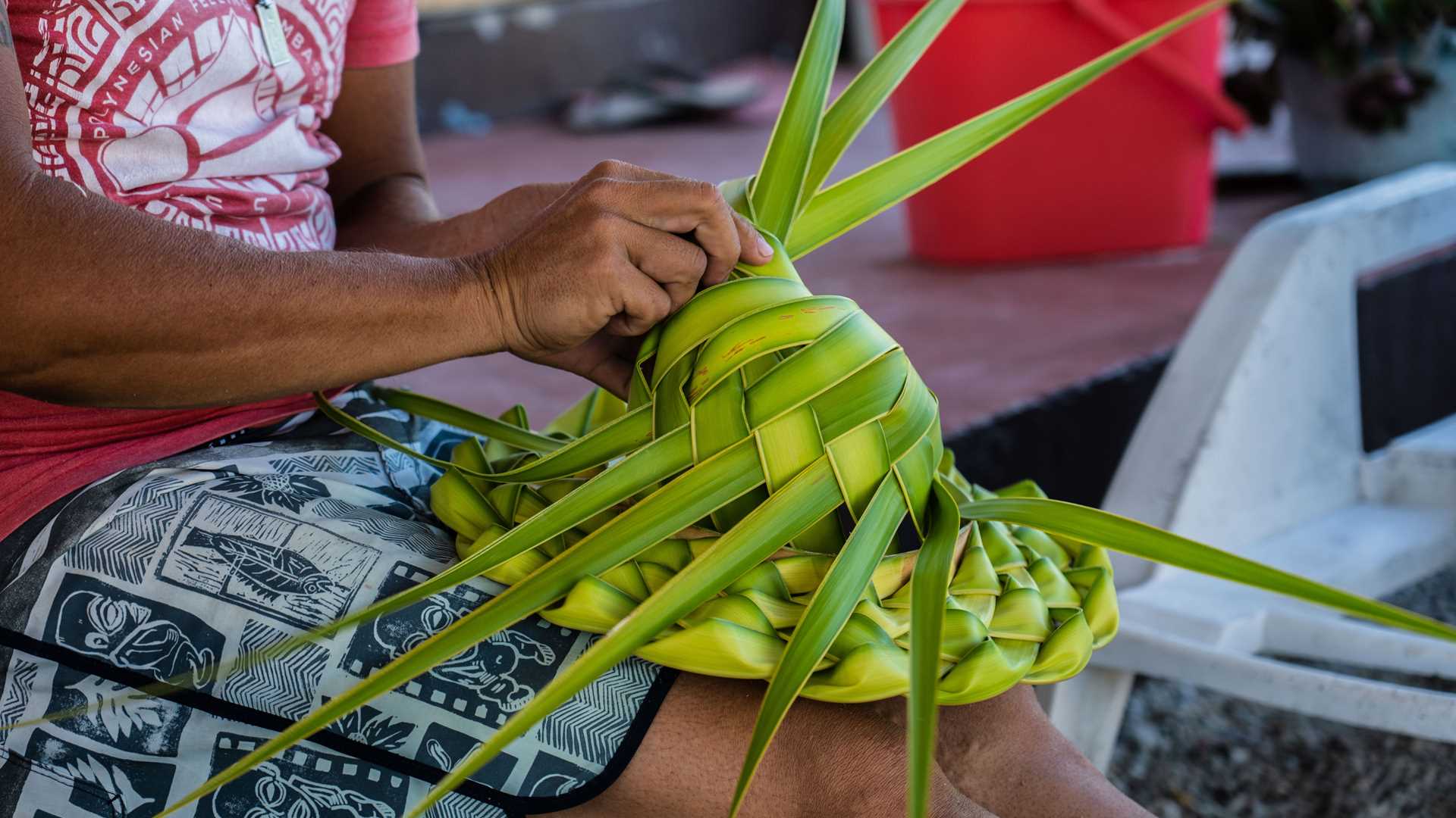 Today, we continued our exploration of the atolls in the Tuamotus. We are interested in learning more about the biodiversity of the reefs underwater and the culture of the local people ashore. We began at Toau with a snorkeling opportunity among the towering coral heads of the reef. We spotted dozens of reef sharks swimming gracefully along the shallows and hundreds of brilliantly colored boring clams burrowed into the reef. Later in the day, we landed on Fakarava, where some guests rode bikes along the shores to the community church. Others joined National Geographic photographer Krista Rossow and photo instructor Alex Krowiak for a guided photo walk through the community to learn about storytelling and engaging with locals to create powerful images. Along the way, we also learned about the weaving, pearl farming, canoeing, and sailing that are so central to the people here.