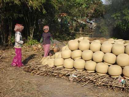 In the afternoon we arrived at Kampong Chnnang and took small boats out to cruise along floating villages and fish farms on our way to shore to visit a local pottery village. This is where the ceramic pots for storing water are made, and it was fascinating watching the entire process of how they are created. We were especially fortunate today because we were able to witness the firing the pots, which only occurs once every week or two. During our trip to the pottery village we also met with a local villager who collects palm sugar. He displayed for us how he collects the sugar by climbing a bamboo ladder up 50 or so feet to the top of the palm tree, at which point he will make small cuts to the male or female flowers and hang bamboo tubes to collect the liquid that drips out. This liquid is then boiled to create a delicious sticky palm sugar. There are little bamboo bridges that connect the tops of the trees so he can walk from one tree to another without having to climb down, and it was incredible watching him walk from canopy to canopy. After enjoying the afternoon at the pottery village, we took a sunset cruise around the floating village and had some wonderful photographic opportunities before arriving back on board the ship.