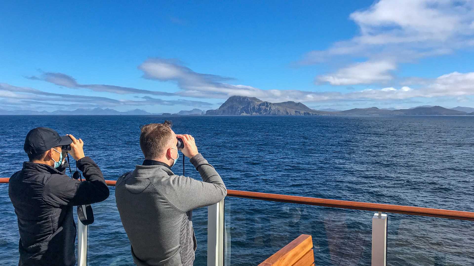 After an amazing time exploring the Antarctic Peninsula, we awoke on the final day of our journey to blue skies and wonderfully calm seas as we neared the end of the infamous Drake Passage. Right out of the gates in the morning, Naturalist Madalena Patacho told us the story of Magellan, before our attention was drawn to the slight detour we had made to sail by Cape Horn. As we made our way towards the Beagle Channel, we enjoyed views of Peale’s dolphins riding the X-bow of the National Geographic Endurance. Soon after lunch, the fresh breeze beckoned us outside again to appreciate the smell of earth and trees as we made our way back into the southern tip of South America, just in time to listen to naturalist Conor Ryan give a talk on “The Smell of the Sea.” Several species of seabirds – from albatross to petrels and penguins – and views of sei whales were seen around the ship in the afternoon. We finally rounded out our last day on board this magnificent ship with the world premiere of the Guest Slideshow, before celebrating our experience over the last 10 days at Captain Aaron Woods’ farewell cocktail party.