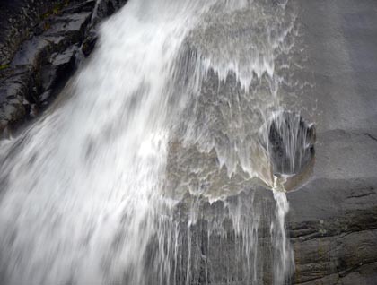 National Geographic Sea Lion rounded the bend and maneuvered close to Hole in the Wall Waterfall. The hole in the hard granitic rock gives the waterfall its name. Sheer granitic cliffs towered above us that were polished and scraped by glacial activity during the Ice Age, which ended only about 10,000 years ago. After our morning briefings, we departed the vessel on inflatable boats for our first hike into the temperate rain forest at Williams Cove.