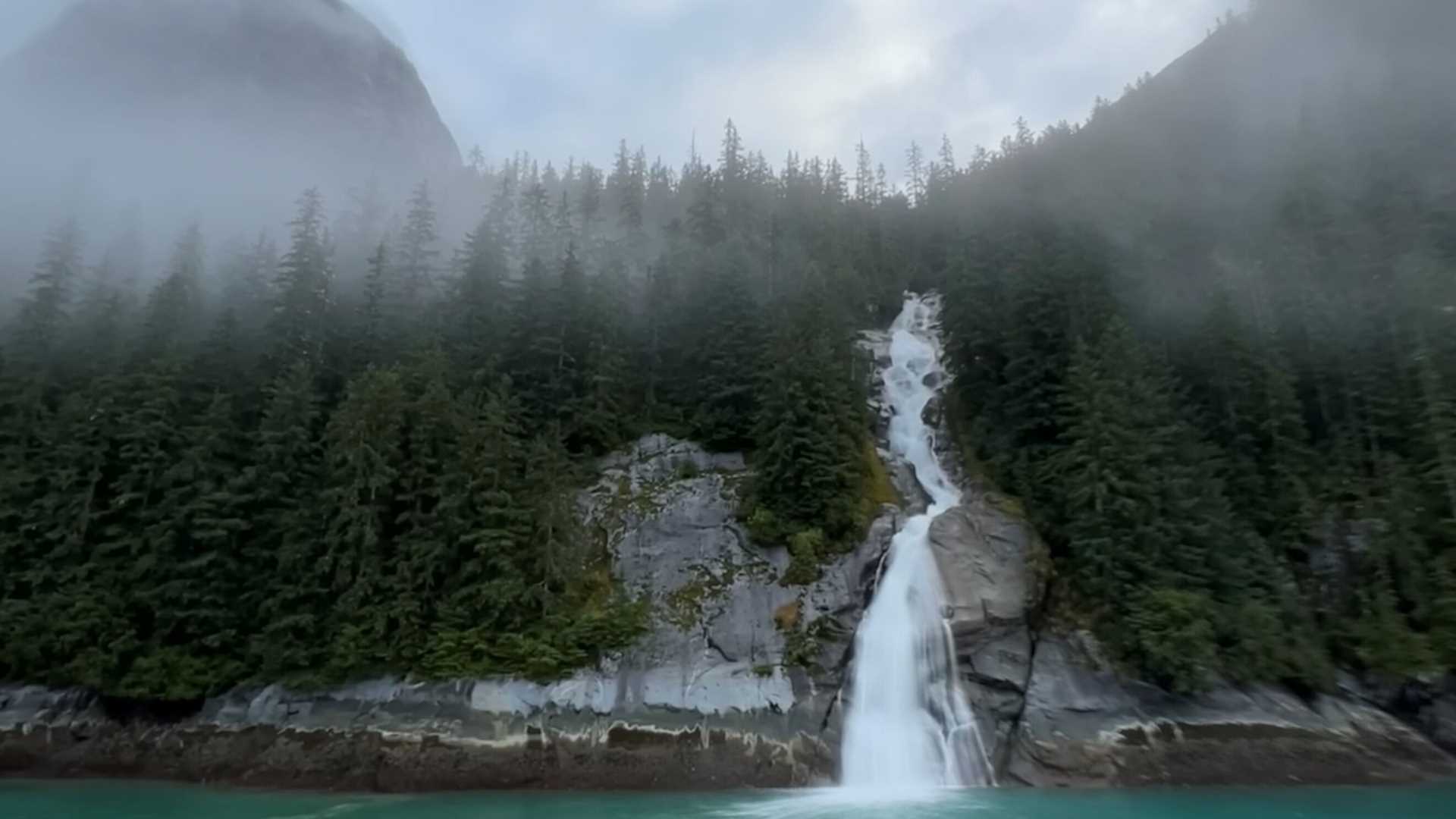 Today we woke up to a perfect day here in Southeast Alaska aboard National Geographic Sea Bird. There was a light cloud cover atop the beautiful fjord as we sailed into Tracy Arm Fjord. The steep walls on either side are breathtaking, and everyone gathered on the bow as we sailed up to Hole in the Wall Waterfall. We were able to learn about long exposure photography and worked on a number of beautiful photos. Due to the steep walls of the fjord, the ship was able to maneuver very close to the falls. We then sailed towards the glacier, and as we rounded the corner, the lighting from the sunrise was absolutely incredible.
