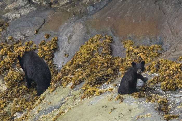 Today has been a beautiful day exploring Tracy Arm. We had great opportunities to see harbor seals surfacing around us, as well as South Sawyer Glacier calving into the ocean. We found two black bears on our way to explore Williams Cove, and then spent the afternoon kayaking and hiking inside the temperate rain forest.