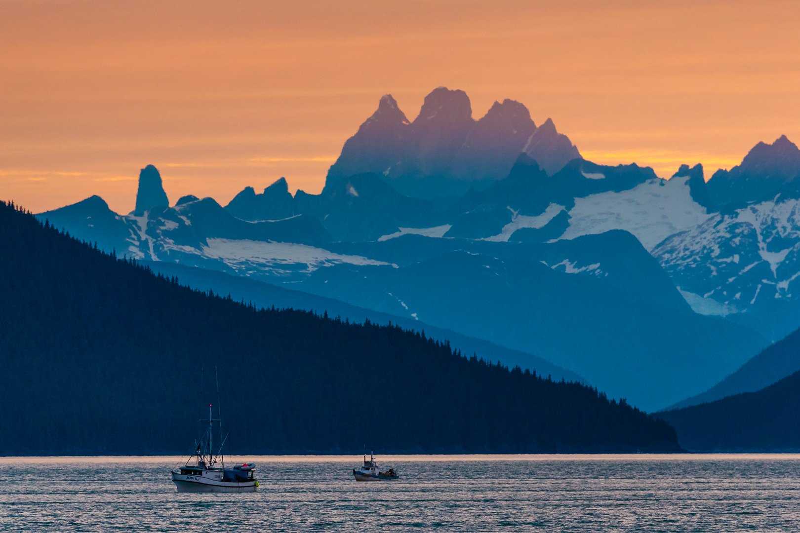 During the morning, we explored the scenic cove of Pavlof’s Harbor on the southeast shore of Freshwater Bay, Chichagof Island, and area known for its healthy salmon stream. We were optimistic that we might still see a bear during our last day exploring Southeast Alaska. We were not disappointed! At the base of a small waterfall, we spotted a coastal brown bear casually gorging itself on salmon as we watched, spellbound, from the safety of our expedition landing crafts only a few yards away. The bear, enjoying its meal, seemed oblivious or at least indifferent to our presence. For nearly an hour, we watched the animal devour fish after fish until it calmly walked up the river bank rocks and into the forest. Late summer and early fall is the time to fatten up and prepare for the long winter ahead. Come November and the onset of snow, brown bears will leave the coastline and head to higher elevations near or above treeline. Biologists debate whether bears truly hibernate or just den up and sleep during the winter. Pregnant sows will give birth to tiny, one-pound cubs while sleeping within the den and nurse them until spring. We returned to the ship after our morning adventures for lunch and were relaxing in the lounge when another bear was spotted on the beach south of Pavlof Harbor. Although more distant than our first encounter, we all enjoyed another exceptional sighting of a coastal brown bear. But the wildlife viewing wasn’t over yet! As we sailed south along Chatham Strait, we encountered a pod of killer whales swimming nearby. Crusing alongside the pod, we counted a group of about ten that included one large male. His large dorsal fin rose nearly six feet above the water‘s surface. Guests spent the remaining time reading or chatting with friends. We wrapped up our day with the captain‘s dinner followed by the guest photo slideshow, which we enjoyed as we sailed toward Sitka through Peril Strait. Have we seen it all? Hardly! But we left with a sense of fulfillment, knowing that we saw a lot! And maybe one day we‘ll return and finally see some elusive moose!