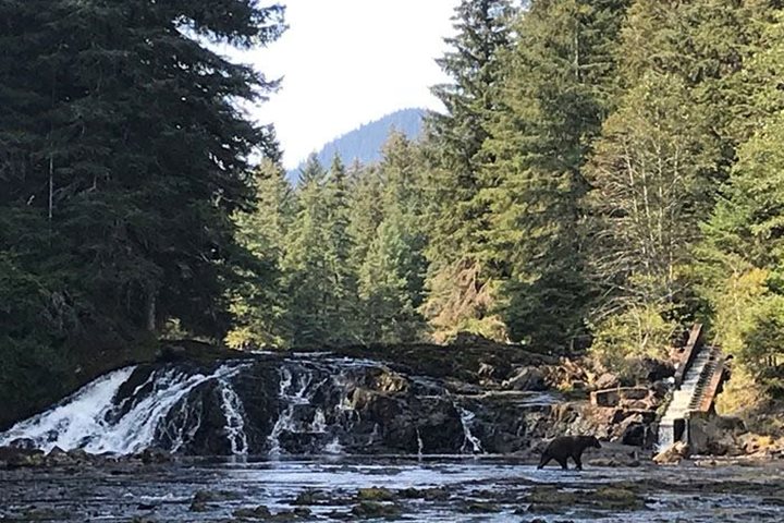 During the morning, we explored the scenic cove of Pavlof’s Harbor on the southeast shore of Freshwater Bay, Chichagof Island, and area known for its healthy salmon stream. We were optimistic that we might still see a bear during our last day exploring Southeast Alaska. We were not disappointed! At the base of a small waterfall, we spotted a coastal brown bear casually gorging itself on salmon as we watched, spellbound, from the safety of our expedition landing crafts only a few yards away. The bear, enjoying its meal, seemed oblivious or at least indifferent to our presence. For nearly an hour, we watched the animal devour fish after fish until it calmly walked up the river bank rocks and into the forest. Late summer and early fall is the time to fatten up and prepare for the long winter ahead. Come November and the onset of snow, brown bears will leave the coastline and head to higher elevations near or above treeline. Biologists debate whether bears truly hibernate or just den up and sleep during the winter. Pregnant sows will give birth to tiny, one-pound cubs while sleeping within the den and nurse them until spring. We returned to the ship after our morning adventures for lunch and were relaxing in the lounge when another bear was spotted on the beach south of Pavlof Harbor. Although more distant than our first encounter, we all enjoyed another exceptional sighting of a coastal brown bear. But the wildlife viewing wasn’t over yet! As we sailed south along Chatham Strait, we encountered a pod of killer whales swimming nearby. Crusing alongside the pod, we counted a group of about ten that included one large male. His large dorsal fin rose nearly six feet above the water‘s surface. Guests spent the remaining time reading or chatting with friends. We wrapped up our day with the captain‘s dinner followed by the guest photo slideshow, which we enjoyed as we sailed toward Sitka through Peril Strait. Have we seen it all? Hardly! But we left with a sense of fulfillment, knowing that we saw a lot! And maybe one day we‘ll return and finally see some elusive moose!
