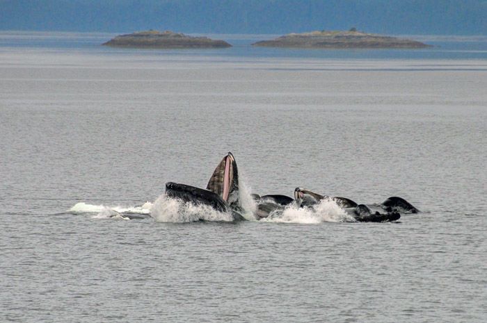 National Geographic Quest arose amidst light clouds within the protected waters of Ushk Bay. This area is known for a salmon stream and yields plenty of opportunity for kayaking and exploring the vast meadows of its inner waterways. On this day’s occasion, guests were able to hike and paddle their way along the coast of Ushk Bay and witness firsthand the life cycle of Pacific salmon making their way upstream. As we transited through Peril Strait, we were lucky to see humpback whales. These immense mammals were “lunge feeding” very near our ship. Being able to witness this event was unique for guests and staff. Lunge feeding is process through which individual whales push their gaping mouths through the surface and collect any fish or planktonic invertebrates in the process. Witnessing this behavior was truly a remarkable experience for all. We will cherish this moment for a lifetime.