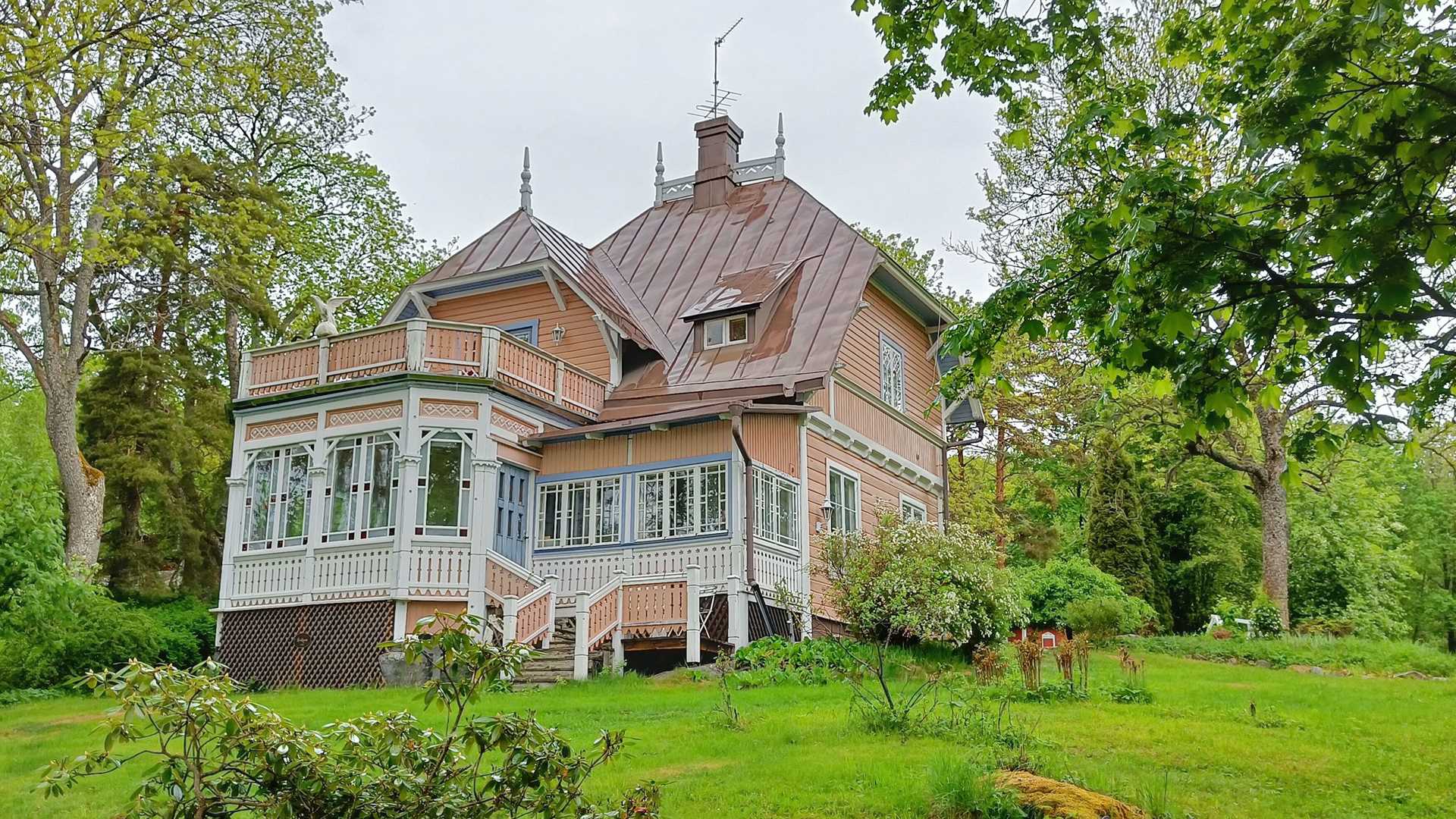 Our first activity of the day was a drive out to the town of Ruissalo, known for its collection of beautiful wooden villas dating from the 1850s. There are over 200 historically protected villas here, and we had an opportunity to walk along the wooded path. We admired the balconies, decorative railings, stained glass, and intricate trelliswork, as well as the charming bathing huts with their floating decks.