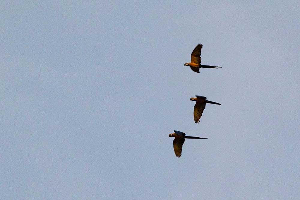 Today we started our activities before breakfast along the shore of the Ucayali River. We are reaching the furthest points of the Pacaya Samiria Reserve as we make progress navigating upstream we find new and interesting life forms. This morning we spotted several types of parrots and macaws still perching on the trees they spent the night. The most the most wanted bird in this region is the blue and yellow macaw that nests on dead palm trees. It took some minutes of exploration to find them perching on a large tree. They are very noisy!