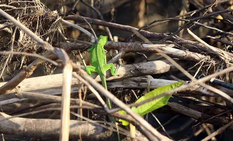 Reptiles have also found a place to live here. Sometimes we see green iguanas up in the trees where they sunbathe and hide from the eagles that prey on them.