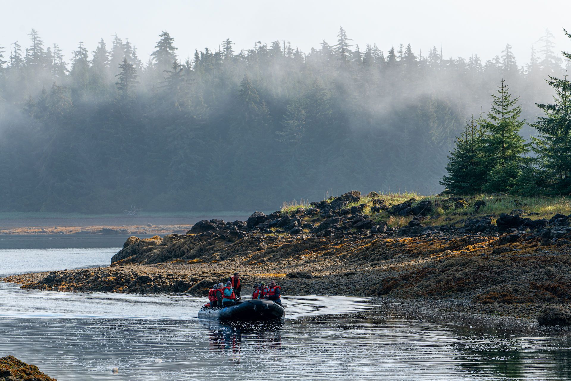 We departed in the early hours for our exploration of Yanayacu River, a tributary of the Marañón River. As soon as we boarded the skiffs, we spotted pink river dolphins foraging in the shallow waters with neotropic cormorants. At this time of year, the landscape is dotted with different species of birds, including large flocks of great egrets. We entered the kingdom of the endless forest, through which most of the rivers flow to form larger ones. The Ucayali and the Marañón Rivers eventually merge, giving origin to the mighty Amazon. This jungle is vibrant and full of life, from birds to monkeys. This morning was a special one, as hundreds of egrets mixed with cormorants, wood storks, and kingfishers. All of them foraged in the early hours. In the afternoon, we visited Amazon Park to explore the forest and suspension bridges. This forest is a pristine one, as no tree has ever been cut. The ecosystem is just like it was thousands of years ago. This is the kingdom of the giants! All the trees in this forest are around a hundred feet tall. We were happy to visit such a pristine spot in the Amazon. Indeed, we felt small as we walked under the canopy. There is so much foliage that there is not much light near the ground of the forest. The rainforest is just amazing!