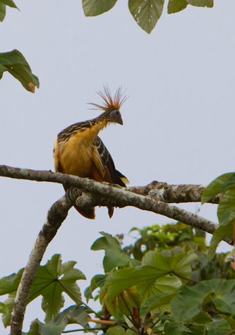 Today we also enjoyed many Thanksgiving Day birds. Most of our birds were for viewing. This morning we saw blue and yellow macaws at their nest trees, the hollowed out aguaje palms. We also watched soaring hawks and vultures take to the air to enjoy the morning thermals. Our eyes caught sight of a huge flock of large black and white birds enjoying the rising air columns too, but these were not raptors. Instead we were watching a group of 40+ wood storks gaining altitude – perhaps to find their next wetland. In the afternoon we saw the most comical looking bird of the trip, the prehistoric-looking hoatzin. Related to cuckoos, hoatzins have a blue face, red eye and 80’s punk style “hair-do.” They live in trees and nest over the water. The young are adapted to jump into the water if there is danger, and then have claws to help them climb back up into the tree.