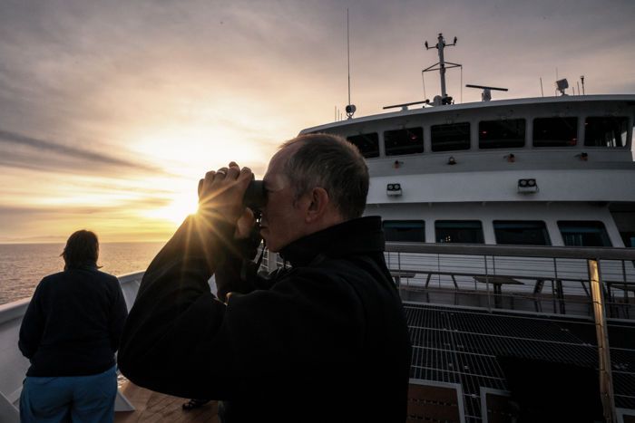 Late in the afternoon, we had an evening exploration along el Dorado River, with the objective of experiencing the colors and sounds of the rainforest as the night arrived. With a big reflecting light, our naturalist spotted several caimans. After a wonderful sunset, the magical colors of the golden hour remain in our memories, there is camaraderie brewing and it is time for a Pisco sour to end another wonderful day onboard the Delfin II.