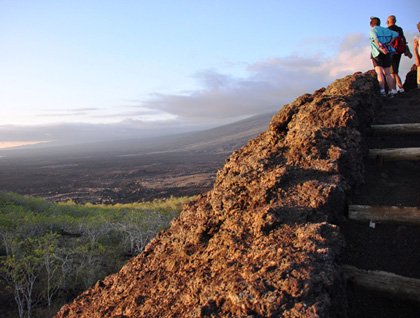 Early in the morning we disembarked on Urbina Bay at Isabela Island, the largest of all islands in the Galapagos. This visitor site is surreal. We believe it was uplifted in 1954 by a magmatic chamber which raised the seafloor, allowing new species to compete and conquer new grounds. Land and marine iguanas call this place home. We were very lucky to have a close encounter with our enigmatic reptile, the Galapagos Tortoise. We walked over two miles from 8:00 to 11:00 a.m. under the Ecuadorian sun seeing different lava formations, texture as props for plants and all kinds of wildlife. We even had an opportunity to visit the beach.