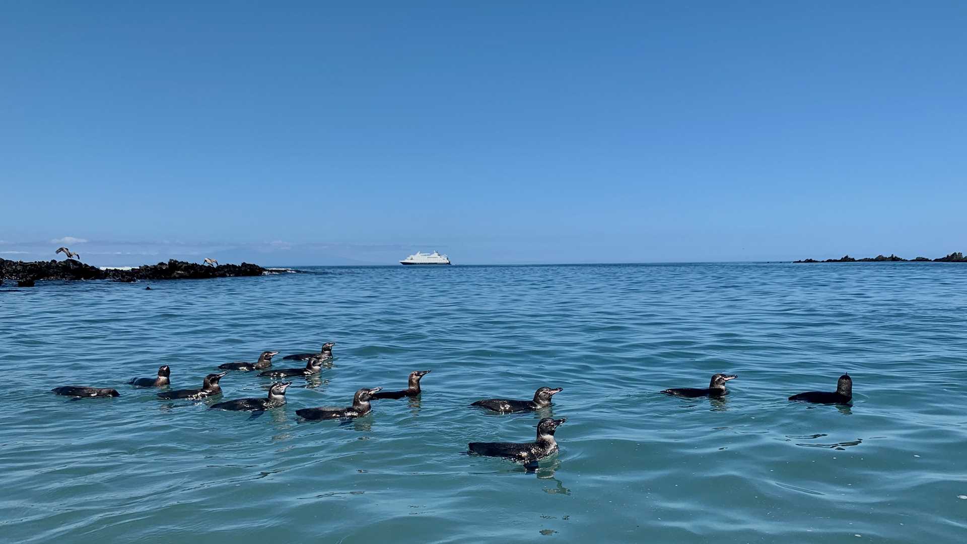 On National Geographic Endeavour II today, we explored Bartolome, home of a small colony of Galapagos penguins. Bartolome is one of the youngest islands, and it is located next to Santiago Island in the central part of the archipelago. After an amazing sunrise, we went ashore for a walk, and we were transported back to a time when the land was newly formed. We began our day by hiking to the top of a tuff cone known as the islet of Bartolome, named after the First Officer of The Beagle . Walking on this young island allowed us to understand the formation and volcanism of the Galapagos Islands. The rocks are a great way to understand the area and its geology. We spotted a few lava lizards and painted locusts, some of the very few animals on this island. As we reached the top, we had a great view. Our guests enjoyed the magnificence of Pinnacle Rock. After we visited one of the most iconic geological formations of the Galapagos, our breakfast was enhanced by dramatic views of the impressive volcanic landscape. We visited the beach near Pinnacle Rock, where we enjoyed how the sun made the sand sparkle due to a concentration of silica. Later, we went snorkeling along the channel between Santiago and Bartolome Islands. Many of our guests spotted whitetip reef sharks and very colorful parrotfish. The landscape was beautiful with lots of sea stars. We enjoyed the chance to be surrounded by Galapagos penguins and feel accepted as part of this environment. After a delicious Mexican lunch, we had lectures on the photography of reptiles and Darwin. Afterwards, we went to Chinese Hat Islet to snorkel from the Zodiacs. The area is home to a small colony of Galapagos penguins. In a sandy-bottomed, sheltered channel, our guests enjoyed swimming with whitetip reef sharks, rays, and many fish. It was a nice and sunny afternoon. After snorkeling, we had the chance to explore the unique, small volcano that formed an island in front of Santiago on a sunset Zodiac ride. After a spectacular day full of activities in the field, we returned on board. Every day in the Galapagos is an opportunity to reconnect with the beauty of nature through unbelievable encounters!