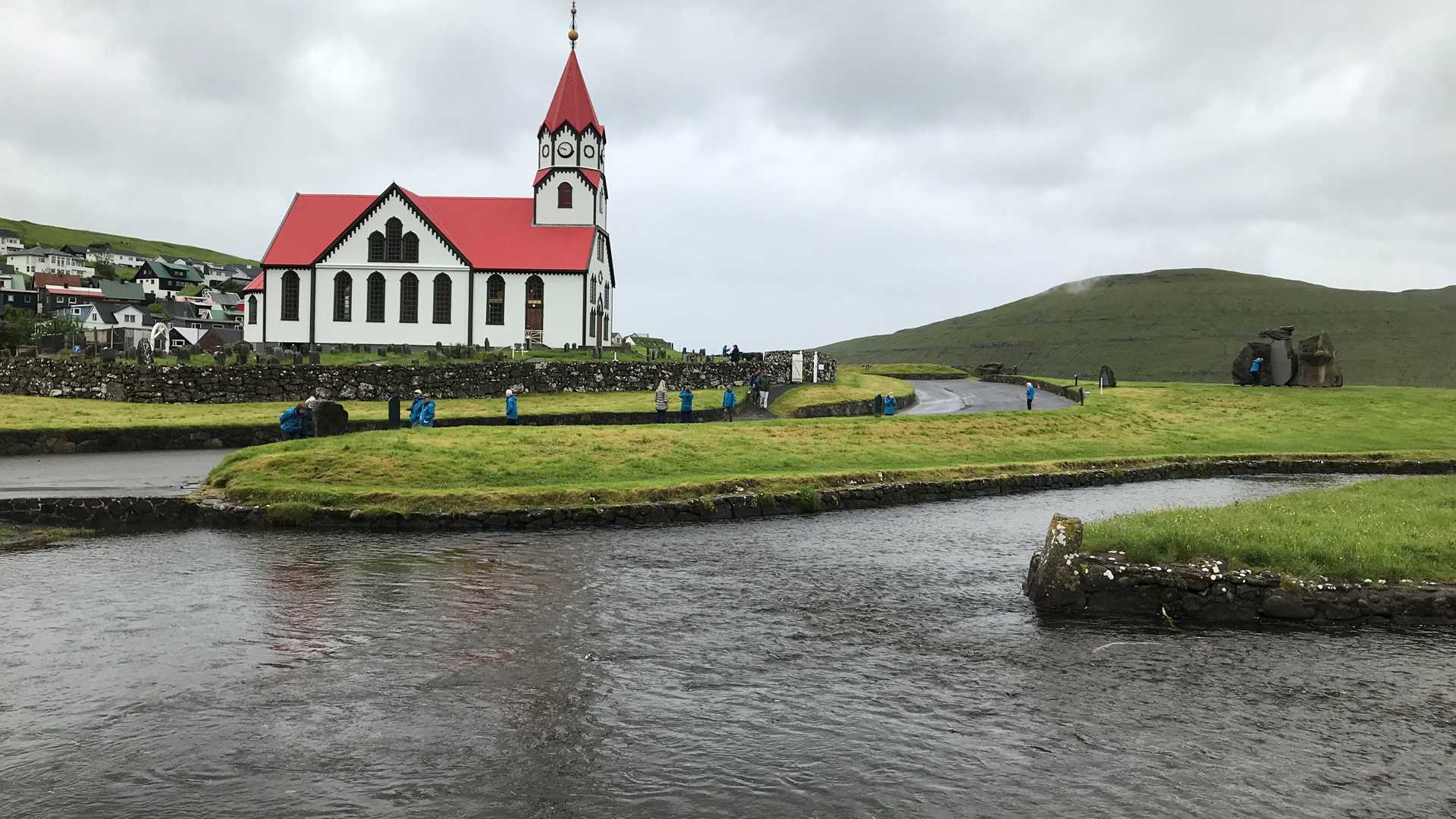 Nearby lies the village of Sandavágur with its pretty church. Eighty percent of the population belongs to the state Lutheran Church. This one dates from 1917 and has a beautifully painted interior with floral motifs, and it contains a rune stone from the Viking Age. Despite its dramatically steep hillsides, Vágur is also the unlikely home of the Faroe’s airport, started by the occupying British forces during the Second World War.