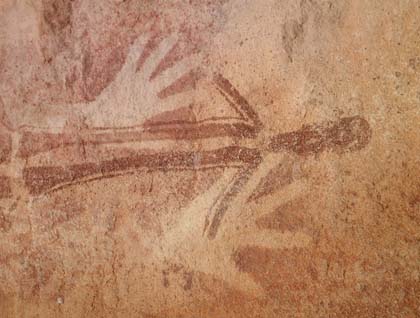 This picturesque and rugged island holds many secrets. After a short and accessible walk through a sandstone path, we were fortunate to discover and contemplate a few of them. We visited two main galleries where different styles of rock art can be observed. Bradshaw figures are the most extensive primitive rock drawings in the world. Depicting elongated human figures dissimilar from Aboriginal art found throughout the Kimberley, the Bradshaw figures were named after the English pastoralist and explorer, Joseph Bradshaw. He made the discovery in 1891 whilst traversing the Prince Regent River area, searching for suitable pastures. The Bradshaw figures are usually mulberry in colour and appear to be impregnated into the rock rather than painted on. They are very detailed depicting males in ceremonial dress. On occasion, pronounced breasts on either side of the figure identify rarely sighted female figures. Numerous tassel shaped ornaments are evident depicting hair. Dating the rock art has proved difficult and controversial. In 1996, a technique using optically stimulated luminescence to date fossilized mud wasp nests that were built over Bradshaw figures showed the nests to be 17000 to 22000 years old. This finding provides a minimum age dating back to the last ice age. In many cases, Wandjina art has been painted over Bradshaw art and have only been revealed when the ochre peels off the rock surface. Explorer and art examiner Grahame Walsh systematically documented the paintings and recorded the legends and historic incidents, relevant to significant rock art regions of Australia.