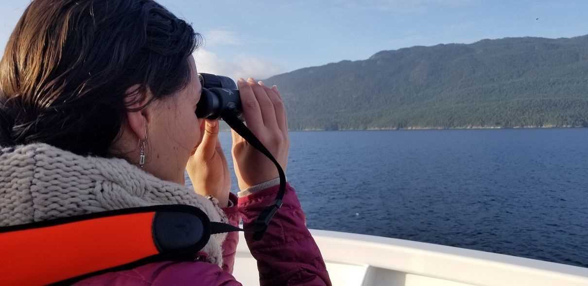 This morning we awoke traveling north through the Strait of Georgia and encountered several humpback whales off the bow. At one point, we spotted a mother and calf, and the youngster breached multiple times just off the bow of the ship. After lunch we anchored in Desolation Sound for kayaking and bushwhacking – quite a stunning place indeed! Explorers found slugs, river otters, harbor seals, and intertidal oysters on the nearby shores. After another great day in British Columbia, we finished out the evening with another delicious dinner from the chef.