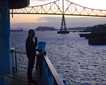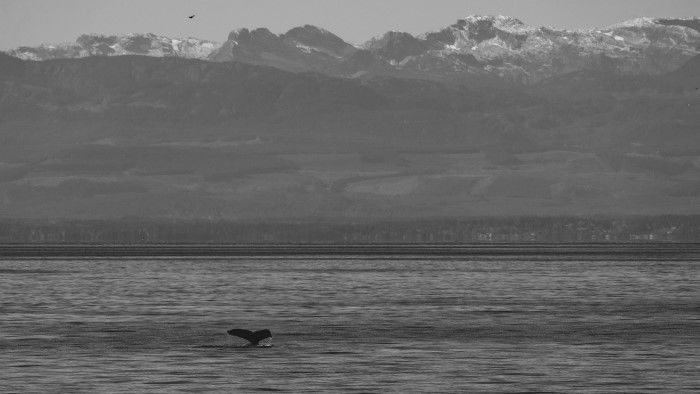 After days of sunshine and warm temperatures, the “raincoast” delivered some authentic fall weather today. The day started with a thick fog as we cruised into Friday Harbor and cleared Customs. By the time we reached Lime Kiln Lighthouse on the west side of San Juan Island, the fog had lifted, giving us picturesque views of the Strait of Juan de Fuca with Vancouver Island silhouetted along the horizon. We were able to tour the gorgeous lighthouse that, in addition to still being operational, serves as an interpretive spot for the southern resident orca whales that frequent the area. In recent years, this unique population of whales has shrunk to 73 individuals due to a variety of reasons, especially decreased salmon populations. In the evening, two members of the Center for Whale Research came aboard to discuss their most recent findings and what must be done to ensure that these intelligent and charismatic animals continue to populate these waters for generations. The San Juan Islands are also home to a little-known piece of U.S./U.K. history. Known as the Pig War, a nonviolent confrontation over the border took place between the two countries. It was settled after much dispute. For twelve years, American and British camps occupied opposite sides of the island until an arbitrator ruled in favor of the Americans, and the border was drawn in Haro Strait, west of San Juan Island. The sites of the two camps are now national parks, and the eerie fog that drifted up the treeless hills added to the overall environment, reminding us that, despite the dry weather, fall and Halloween are right around the corner.