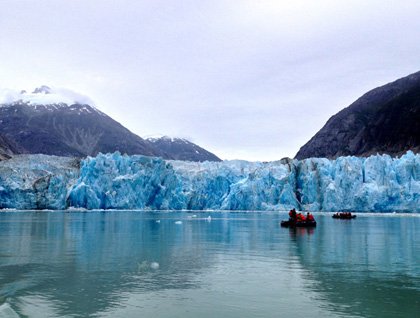 During lunch we arrived in Arnarfjordur whose sides are composed of stacked layers of basalt. During the last Ice Age a gigantic glacier rasped and gouged the rock to form this spectacular drowned u-shaped valley, at the head of which is the Dynjandi waterfall. It is aptly named The Thunderer. At 100 metres in height and 60 metres in width at its base, this is an impressive feature. The cascading water has eroded a series of rock basins, comparable to a number of rock steps, one below the other. We slowly made our way to the topmost platform. The thump of the water, the fine spray in the air, the verdant, lush carpet of mosses, the multi-coloured rocks, the grandeur and scale of the place, all combined to mesmerise. From our perch high above the valley floor, the vista was spectacular. Anchored in the fjords’ pond-calm waters our ship was ringed by kayakers.
