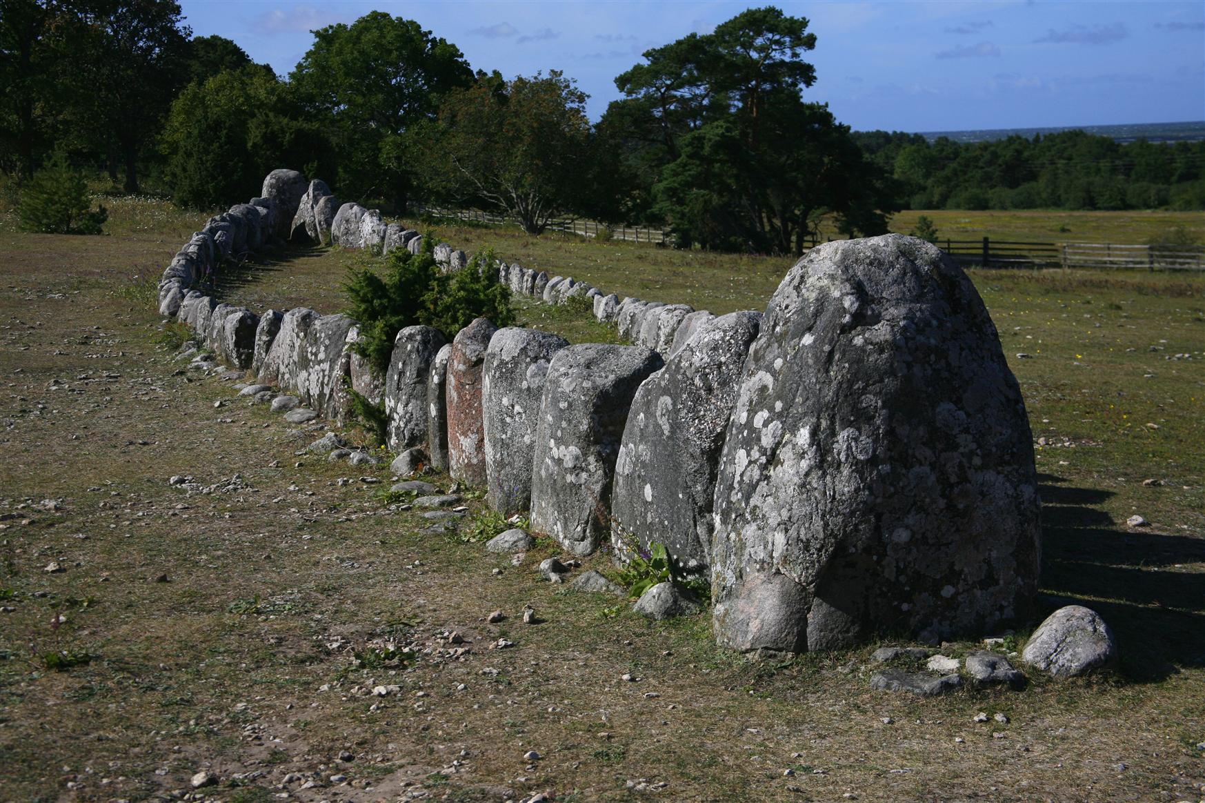 This morning we came alongside in the small harbour of Visby on the island of Gotland. The town was designated as a UNESCO World Heritage Site because of the wealth of its medieval period architecture, which includes over two miles of intact wall, towers, gateways, erstwhile merchant houses, a cathedral and numerous churches. Our focus this morning was an exploration by motor coach of the coast lying to the south. Our first stop was at a remarkable prehistoric site near Frojel. This consists of a Bronze Age boat-shaped grave dated to around 1,000 BC. Archaeological excavation here revealed cremated human remains and associated grave goods. This tradition continued right up into the Viking Period many centuries later when high status individuals were interred in longships within burial mounds. We then drove to a small medieval church which was founded in the thirteenth century. The ceiling above the main alter and portions of the walls were decorated with fine paintings and the church is still used for Divine worship. A short stop was made at a small traditional fishing station. In bygone days local farmers would stay here for a number of weeks each year to fish for herring and cod, an important supplement to their diet. Each family had its own small wooden hut where they could also store their fishing equipment. Members of those same families now use them for holiday accommodation. On our way back to the ship for lunch we were dropped off just outside one of the main original gates of Visby and walked down through the medieval core of this picturesque town. Preparations for the annual re-enactment of the infamous Battle of Visby were underway. Hundreds of participants were dressed up in contemporary costumes and bands of opposing warriors practiced their manoeuvres.