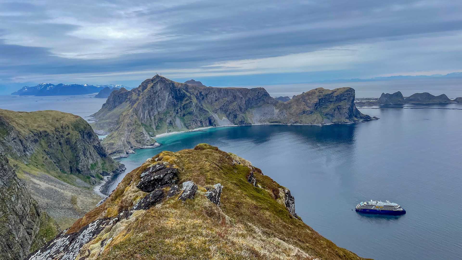 During another scrumptious dinner onboard, National Geographic Endurance sailed to one of the most impressive fjords in Norway–the Trollfjord. Only 100 meters wide at the entrance, the rock walls of the fjord skyrocket out of the water, creating quite a dramatic scene. Towards the back, the channel opens slightly into a calm bay. We all stood on deck soaking up the glorious view.