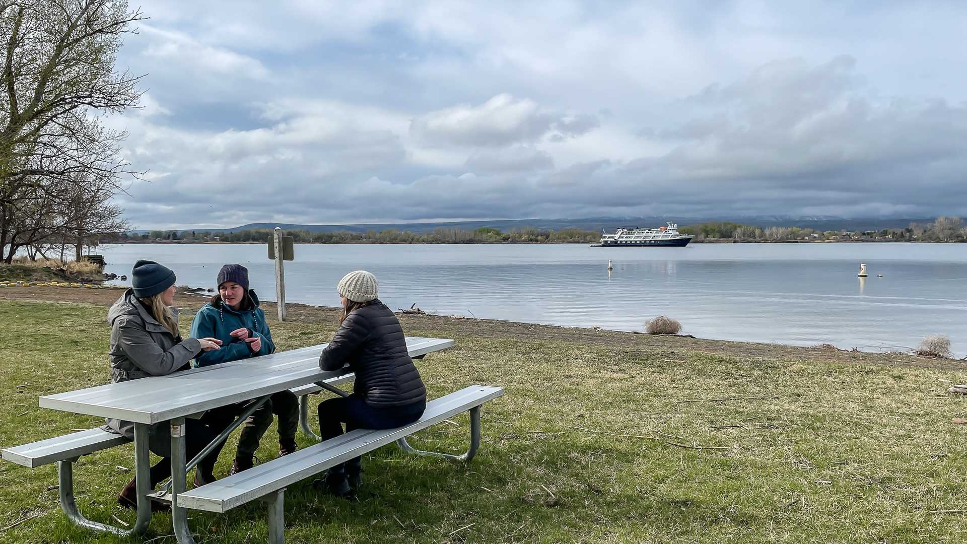 This morning, we left National Geographic Sea Bird anchored at the confluence of the Columbia and Snake Rivers. Our destination was Walla Walla, Washington. The local saying is, “the town is so nice, they named it twice.” Our visits included Fort Walla Walla, Three Rivers Winery, and the Whitman Mission Site. We successfully dodged the moisture-laden clouds that dusted the mountains to the east of us with a late spring snow. It was a beautiful backdrop to our day of exploration.