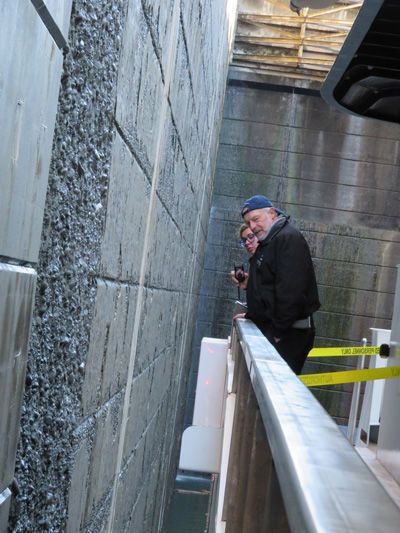 After days of sunshine and warm temperatures, the “raincoast” delivered some authentic fall weather today. The day started with a thick fog as we cruised into Friday Harbor and cleared Customs. By the time we reached Lime Kiln Lighthouse on the west side of San Juan Island, the fog had lifted, giving us picturesque views of the Strait of Juan de Fuca with Vancouver Island silhouetted along the horizon. We were able to tour the gorgeous lighthouse that, in addition to still being operational, serves as an interpretive spot for the southern resident orca whales that frequent the area. In recent years, this unique population of whales has shrunk to 73 individuals due to a variety of reasons, especially decreased salmon populations. In the evening, two members of the Center for Whale Research came aboard to discuss their most recent findings and what must be done to ensure that these intelligent and charismatic animals continue to populate these waters for generations. The San Juan Islands are also home to a little-known piece of U.S./U.K. history. Known as the Pig War, a nonviolent confrontation over the border took place between the two countries. It was settled after much dispute. For twelve years, American and British camps occupied opposite sides of the island until an arbitrator ruled in favor of the Americans, and the border was drawn in Haro Strait, west of San Juan Island. The sites of the two camps are now national parks, and the eerie fog that drifted up the treeless hills added to the overall environment, reminding us that, despite the dry weather, fall and Halloween are right around the corner.