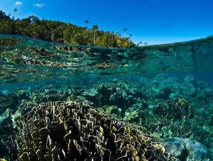 The first thing I saw when I left the National Geographic Orion this morning was a group of manta rays feeding in a current line. I was able to slip into the water and shoot some video and photos of these giants performing their feeding ballet. Raja is a great place for mantas, with strong currents, abundant food, and certain areas designated marine reserves. Then, we snorkeled on a pristine reef, filled with corals of every shape and color. Giant clams were tucked into various folds in the reef, their multihued mantles shining vibrantly. Of course, fish were swirling about. So many different species, attempting to put names to all of them is near impossible. All of this, with postcard perfect mushroom shaped islands, and I couldn’t really think of any place better.