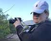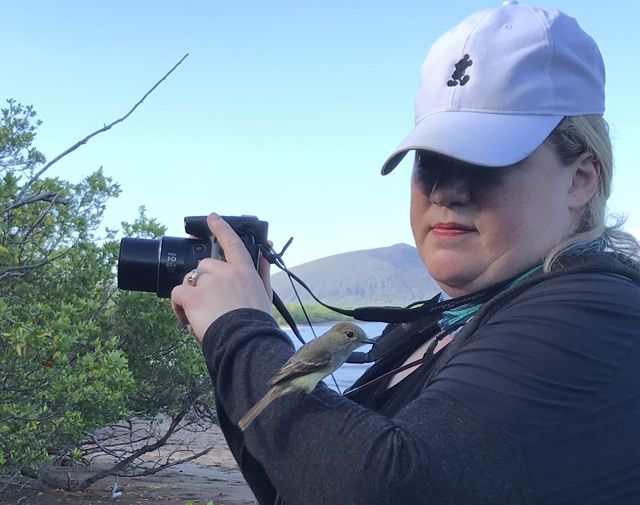 Even before landing, a tussacbird flew out to our ship and examined a Zodiac as we were boarding. Onshore they came up to us. The caracaras were also curious and sometimes surrounded us. These birds of prey of the family falconidae are known as Johnny Rooks in the Falklands. Primarily scavengers, they are intelligent and fearless. They found us interesting and followed us when we took off for a long hike or climbed through the high tussac grasses to view a black-browed albatross colony. Many of us took portraits of them as they watched us perched only a few feet away, sometimes balancing on top of a clump of tussac.