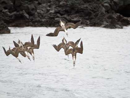 Later on after lunch we anchored in a Tagus Cove. It has the scenic view of volcanoes and the dry forest. High cliffs with layers of volcanic ash make up this marvelous landscape. Many sea birds form colonies all year round upon the layers of ash. At the time of disembarking, some of us boarded kayaks for a different type of exploration along the cliffs and among the colonies of flightless cormorants. For the rest of us, there was an opportunity to explore by snorkeling. There were many wonderful surprises along the way, including sea turtles, flightless cormorants, and penguins.
