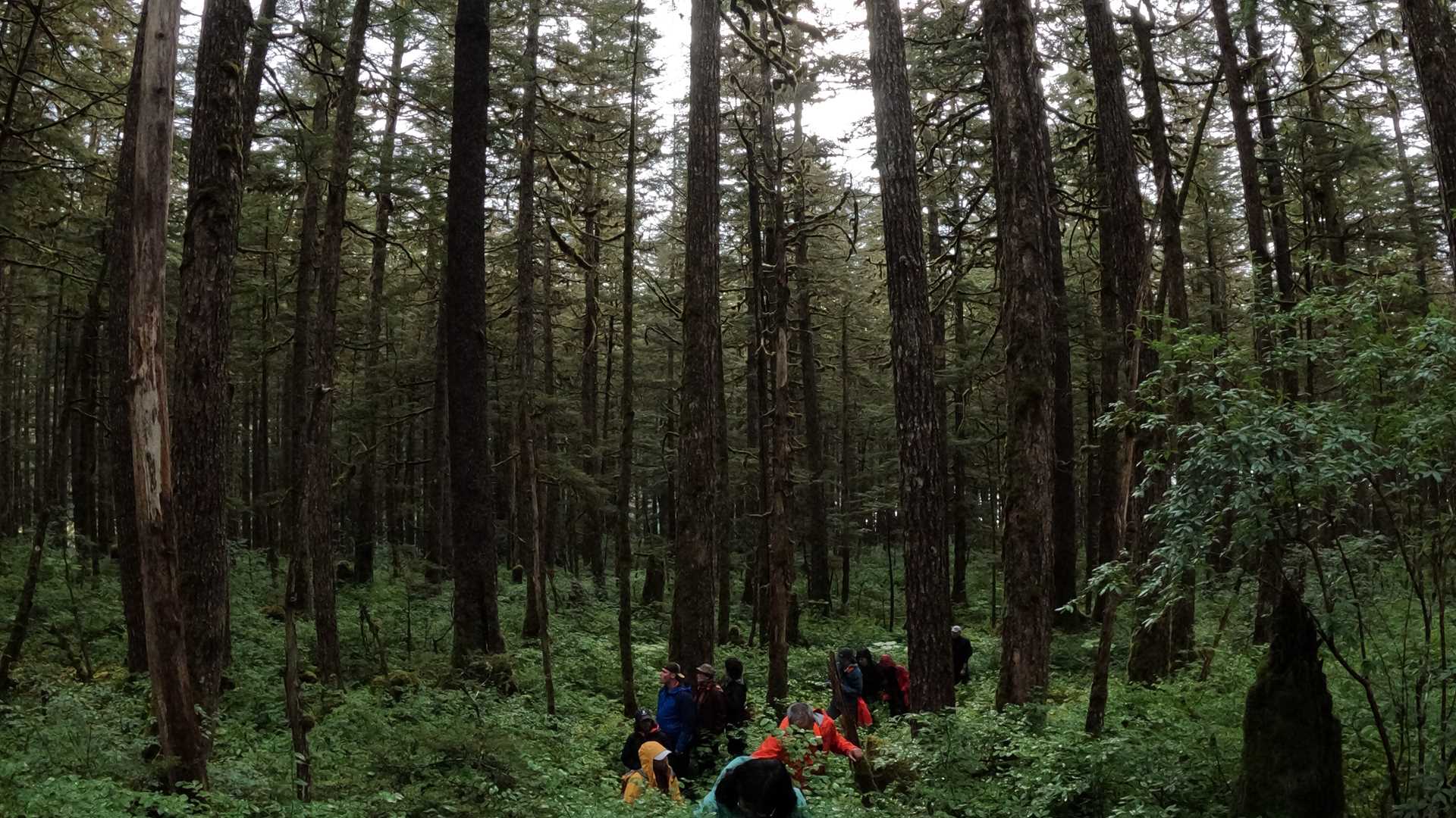 What began as a rainy morning aboard National Geographic Venture turned into high clouds with the occasional peak of sunshine as we traversed Williams Cove in Tracy Arm-Fords Terror Wilderness. Thirty-three people with the spirit of Alaskan adventure decided to explore the forest via bushwhacking. We found immense thickets of juicy, ripe blueberry bushes, patches of bright red watermelon berries, and to our delight, a muskeg with a central pond and lilies!