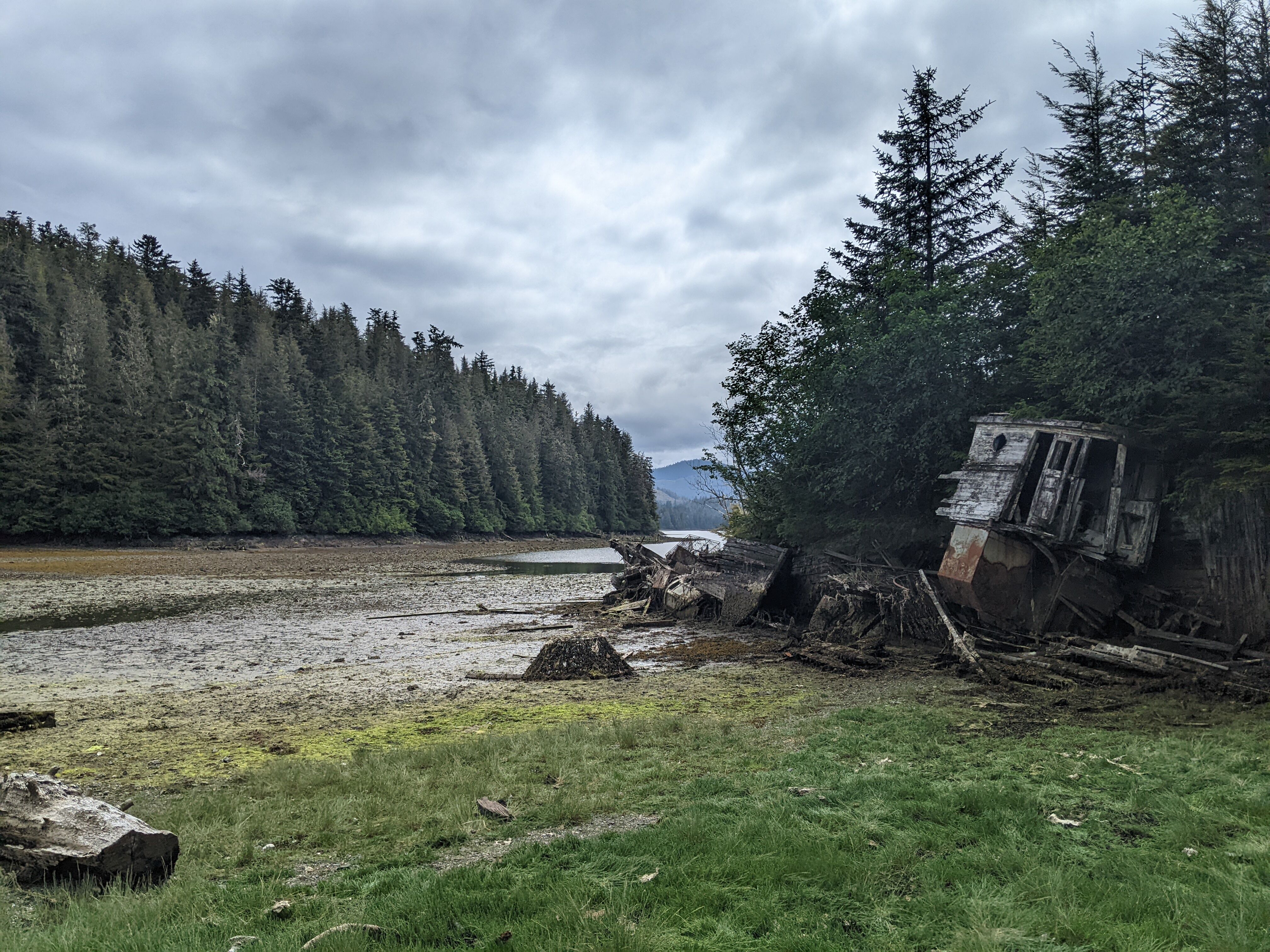 Today we woke to still water, overcast skies and the quaint dock fronting the small town of Wrangell, Alaska. After breakfast some guests opted for a trip up the Stikine River via jet boat. The Stikine is the largest river to cross through the Coastal Mountains into Canada, a large amount of this water flowing from the huge Stikine icefield. Jetboats glided past cottonwood and Sitka spruce up to large tidal flats filled with glacial till. Guests enjoyed threading their way through this complex system of braided channels, wetlands, islands, mud and grass flats, encountering ice washed downstream from the glacier. Running the flats was the best part for many—the pilot, James, had been exploring these flats since he was 11 years old!