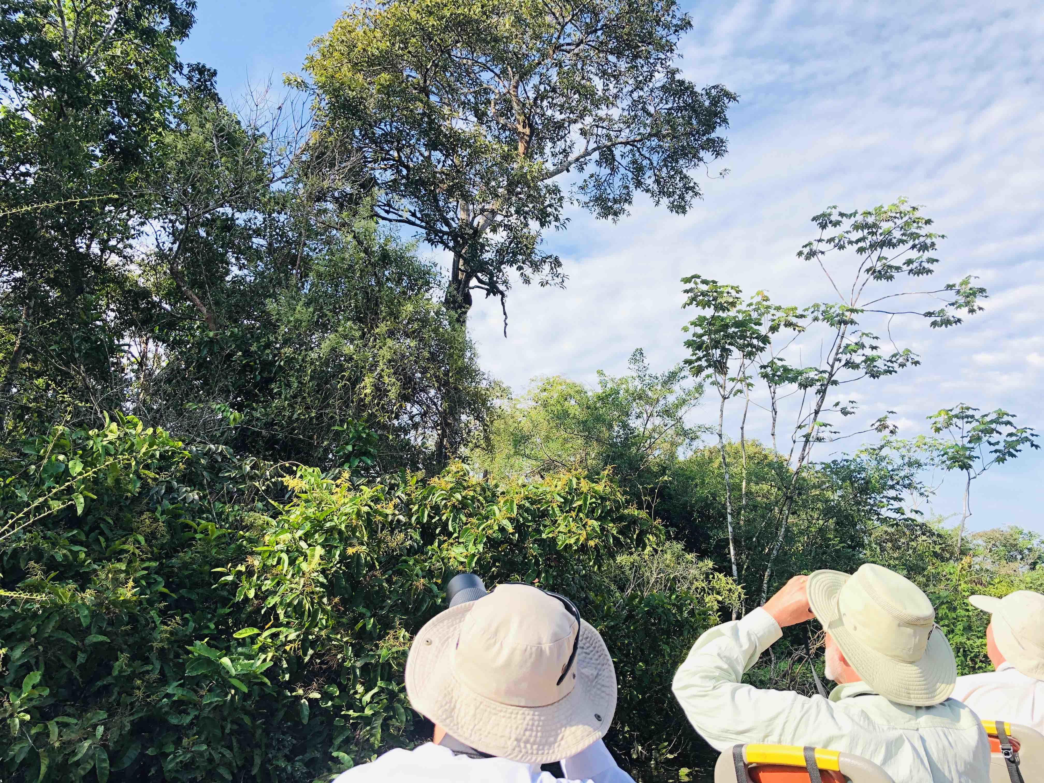 We have had an astonishing week full of the kind of unfathomable experiences that only happen once in a lifetime. Tomorrow, we will be back to another jungle built with cement and other kinds of wildlife. But this morning, we are visiting a very small community at the foot of the Amazon River. People living here are poor in possessions but rich in a very natural way of living, and you see very happy people everywhere. Our guests enjoyed interacting with locals, eating their food, and learning how they use local materials found in the jungle for agriculture, fishing, and handicrafts. Minga Peru is a non-governmental institution. The Lindblad Fund supports these communities in the Upper Amazon through education and by empowering people, especially women, to develop job skills, create jobs with better incomes, and eradicate domestic violence. In the afternoon, we went to Casual Forest. With the help of some local, expert guides, we explored the jungle. The site is home to many creatures, like tarantulas, tiny frogs, and boas. We observed many medicinal trees. This outing was a great learning experience for our guests. Once we got back on board, we enjoyed a farewell cocktail party with all the crewmembers. Our guests were very happy after a great week exploring the Amazon of Peru. Our week was very special. We found capybaras and large caimans during our nocturnal outing, and the highlight was spotting a big jaguar resting on the riverbank of the Pacaya-Samiria Reserve. To celebrate the end of our memorable journey, our talented crew performed in the dining room. They played some local music and danced. We will depart in the morning for Iquitos, where we will visit the Manatee Center and the city’s boulevard. We had a wonderful time together. We made new friends and will remember this trip forever. Cheers to Peru!