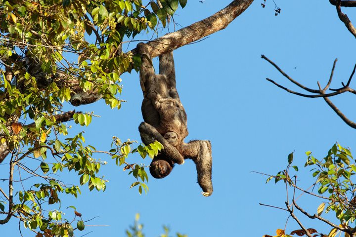 We were extremely lucky to find a couple of poison dart frogs, which were red and blue. We also found a monkey frog that was well-camouflaged in the green foliage. This species of poison dart frog (Dendrobates reticulata) is native to tropical Central and South America, and it is often seen under dried leaves at ground level here in the Amazon. Farther into the forest, we found one pink-toed tarantula hiding among the buttresses of an old strangler fig. These tarantulas are one of over a thousand arboreal tarantula species. They have the ability to eject hairs from their abdomen, causing irritation to predators. It’s incredible to learn that these tarantulas can live up to ten years!