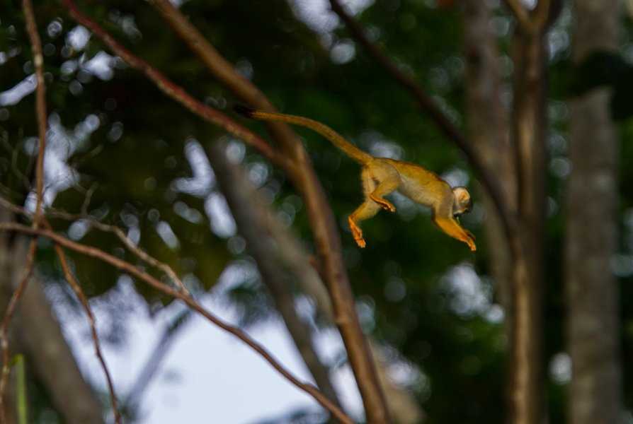 After breakfast we continued to explore the Zapote River aboard the skiffs, adding several more species to our count, including more squirrel monkeys and chestnut fronted macaws.