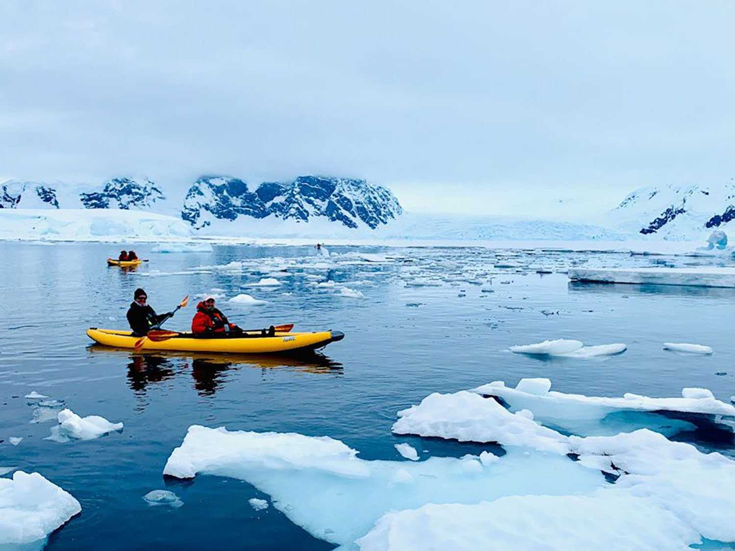 Our afternoon was filled with kayaking and Zodiac cruises around the incredible Wilhelmina Bay, with sightings of crabeater seals and swarms of krill in the crystal-clear waters. —Emmett Clarkin, Naturalist/Expedition Diver