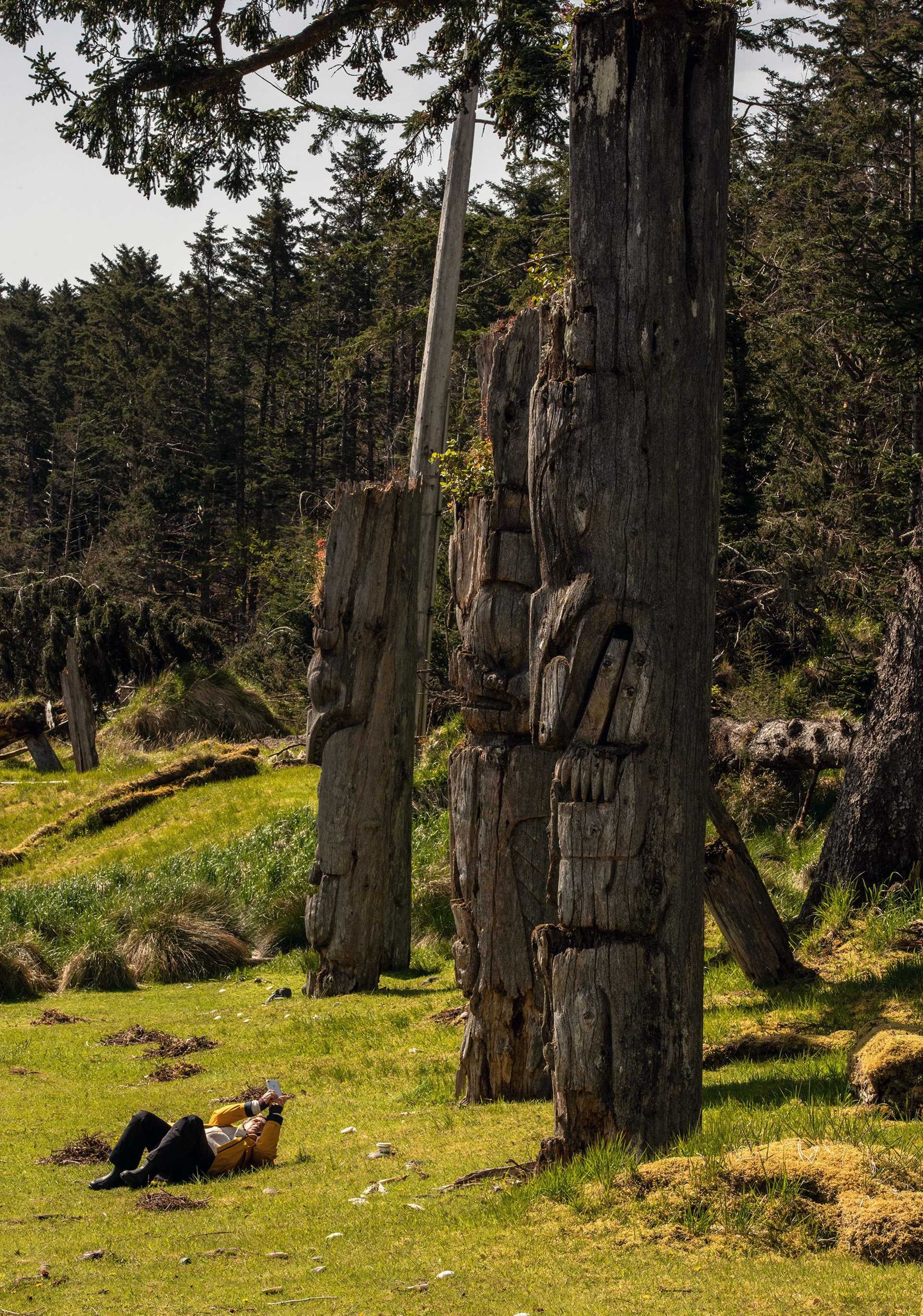 Just before lunch, we gathered again for another Zodiac ride, this one bringing us ashore onto Anthony Island for a short photo walk. A small group of us spent a lovely hour learning the many different ways to make images out of this truly beautiful and magical place, which was preserved as a World Heritage Site by UNESCO on November 27, 1981. We also learned that the totem poles we were spending the day with were largely mortuary poles, honoring the ancients of this site. —Sharon Grainger, Naturalist/Certified Photo Instructor