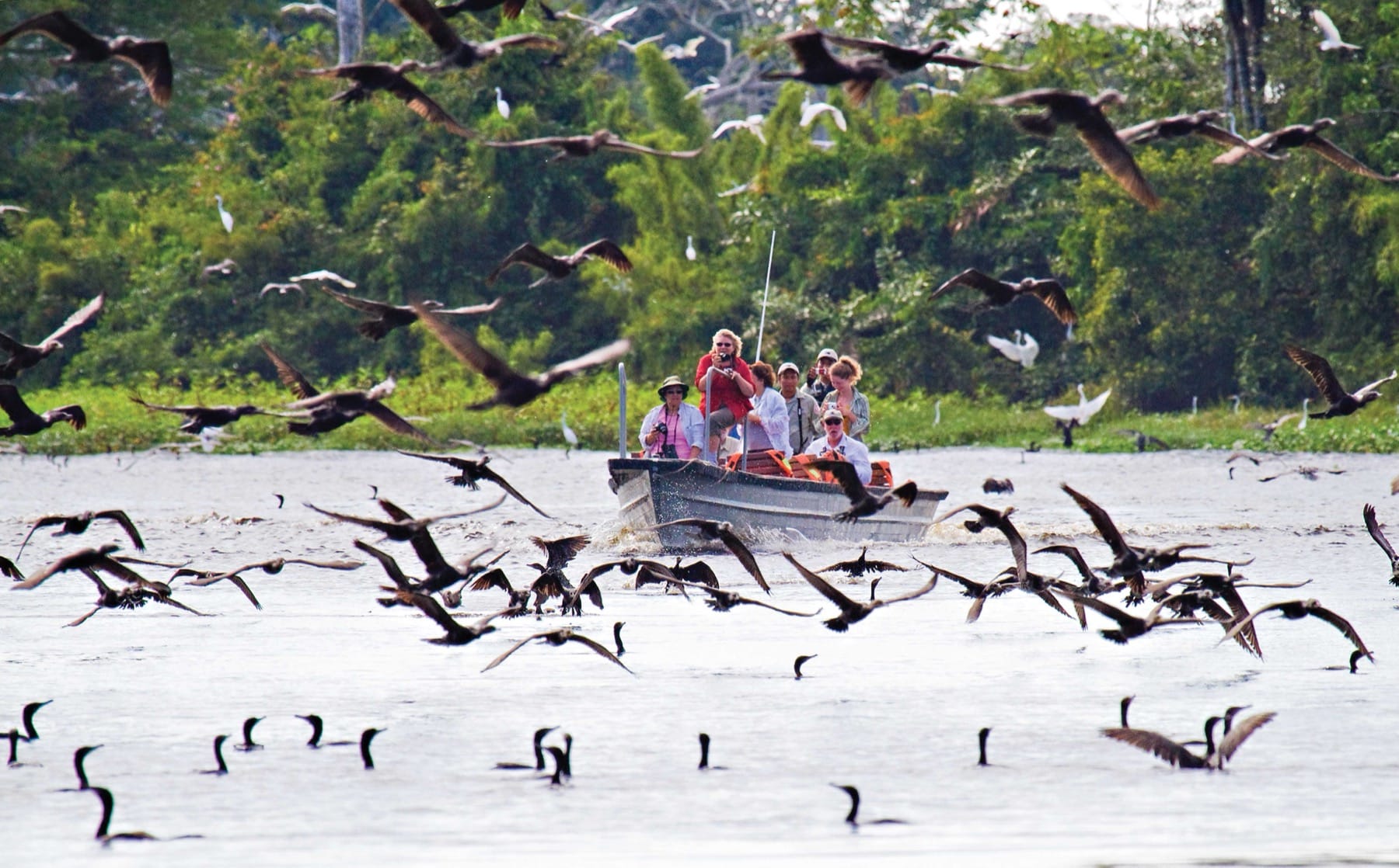 The fertile grounds of the Amazon sustain a mind-blowing three million plant and animal species. At the rivers’ headwaters in Peru, Pacaya-Samiria National Reserve is one of the very best places to spot iconic Amazon wildlife. During the rainy season, the forest floor floods, creating an ever-changing web of wetland channels. Floating down the inky black waters of the “River of Mirrors,” look out for pink river dolphins, piranhas, and lilypads the size of inner tubes. In the trees, keep your eyes peeled for three-toed sloths and shaggy monk saki monkeys. The reserve’s 500-some bird species perform their unique song stylings, until sunset that is, when nocturnal creatures’ calls take over the rainforest symphony. By spotlight, search for frogs, caimans, fishing bats, and more members of the local nightlife.