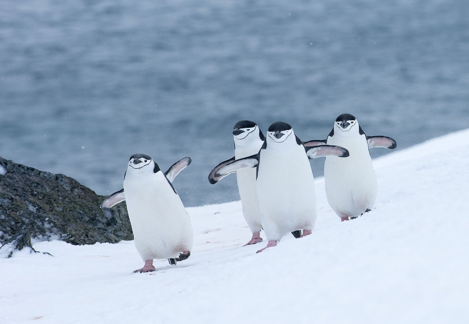 There are no polar bears on the Antarctic peninsula—contrary to what some people mistakenly think. In fact, there are no land mammals at all at the bottom of the world. But you will see plenty of other legendary wildlife. Antarctica and the subantarctic islands are home to eight different species of penguins. Around the continent you’ll come across colonies of gentoos, Adélies, and chinstraps, all displaying endlessly fascinating and funny behaviors. Lucky explorers may also be treated to a rare emperor penguin sighting (or two). There are also all kinds of whales to watch out for. You might see fin, humpback, minke, sperm, rare Type b killer whales and even the largest whale on earth, the blue whale. Plus, the region’s apex predator, the leopard seal, an array of other seal species, and myriad seabirds.