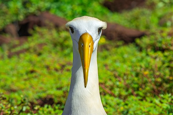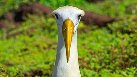 The largest bird in Galápagos, waved albatross can appear comically awkward and gangly on land. But once they take to the air with their massive wingspans, they are in their element, gliding majestically over the open ocean for months or even years on end.
